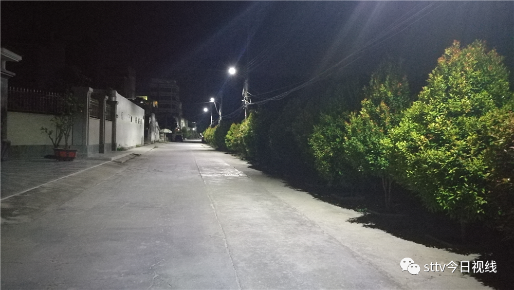 月窟村夜景真迷人 网友“莹莹”点赞,夜幕下,澄海区东里镇月窟村村道整洁,灯光明亮,三个小广场绿树成荫,石椅可供村民乘凉,传统产业月窟豆芽远近闻名,相关壁画留下了乡愁记忆。