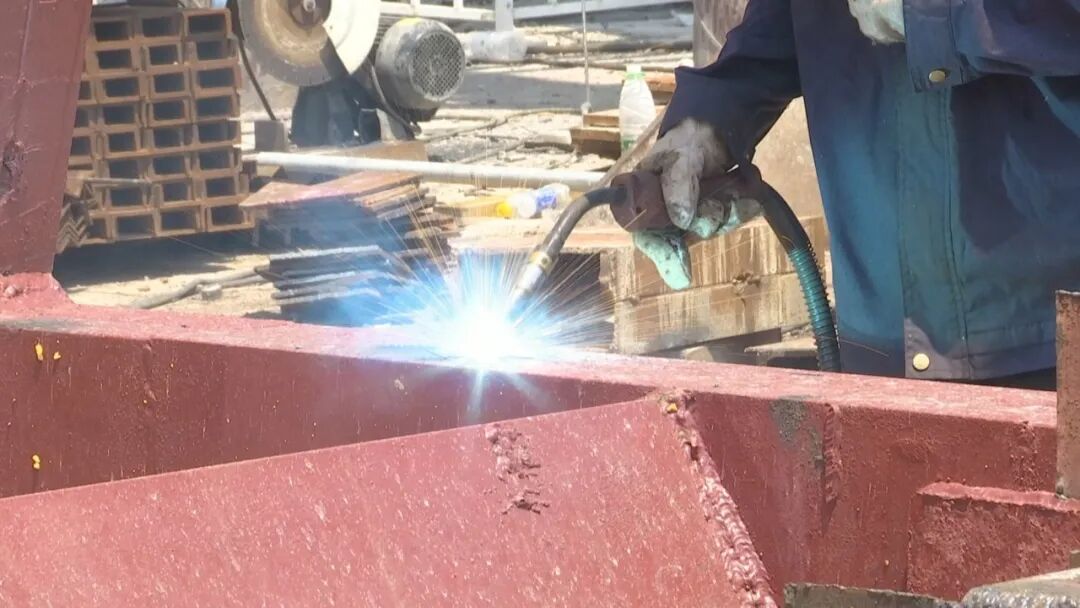 在另一个市重点工程,中阳大道新津河大桥项目施工现场,电焊工董荣巧正在对大桥主塔横撑部件进行焊接,此时,工地的气温已经远远超过在37摄氏度,焊接作业可以说是高温下的高温作业,作为焊工队伍中的年轻人,董荣巧主动承担了更多工作。