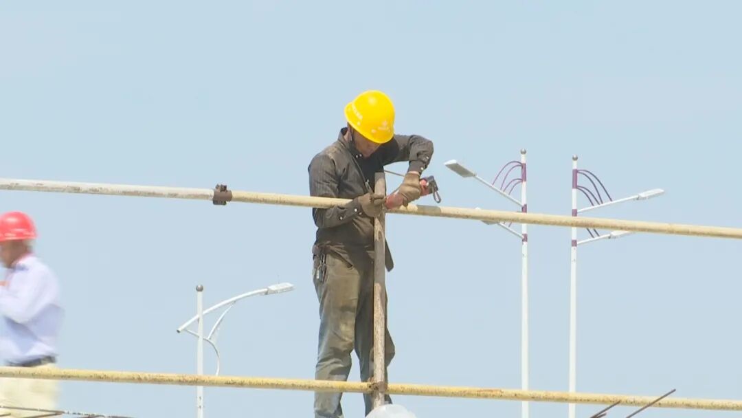 连日来,我市持续高温,热浪滚滚,昨天,我市高温预警信号升级为橙色,今天,市气象台录得市区最高温度38.6摄氏度,潮阳区潮南区发布高温红色预警信号。高温炙烤之下,有这样一群人,顶着热浪,高温作业,汗洒大地。无论是为了个人小目标还是城市建设大目标,他们的身影都自带光环,都值得我们记录和颂扬。本台从今天起推出《战高温》专栏,展现广大建设者凝心聚力,合力推动汕头经济特区新时代再出发的动人故事。 东海岸新城津湾公园将打造汕头新的城市客厅,在施工现场,140多名工人正在进行公园地下车库的施工。今天上午,九点多,工地地面已经是热浪翻滚,稍微站一会,记者就已感觉炎热难耐,但钢筋工张应兵和同事们已经忙碌了大半天。高温下,钢筋网被晒得滚烫,一不小心就可能被钢筋烫伤。