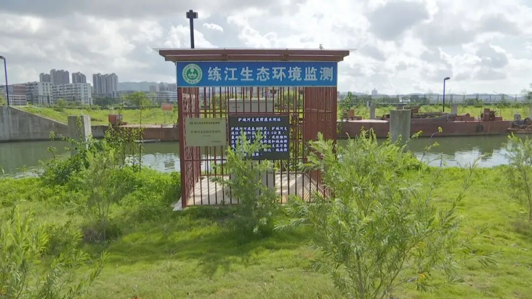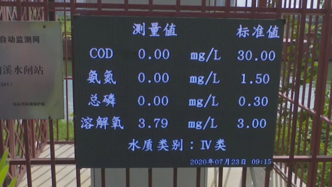 潮阳区护城河是练江的一级支流。河长约9.34公里,流域服务人口超过43万人。7月20日下午和23日上午,记者先后两次来到护城河边,只见河面波光粼粼、溪水清澈,两岸种植了绿色植物,站在岸边,空气清新。旁边这座练江支流水质自动监测网护城河支流前溪水闸站对水质进行24小时实时监测,监测数据在大屏幕上滚动播放。