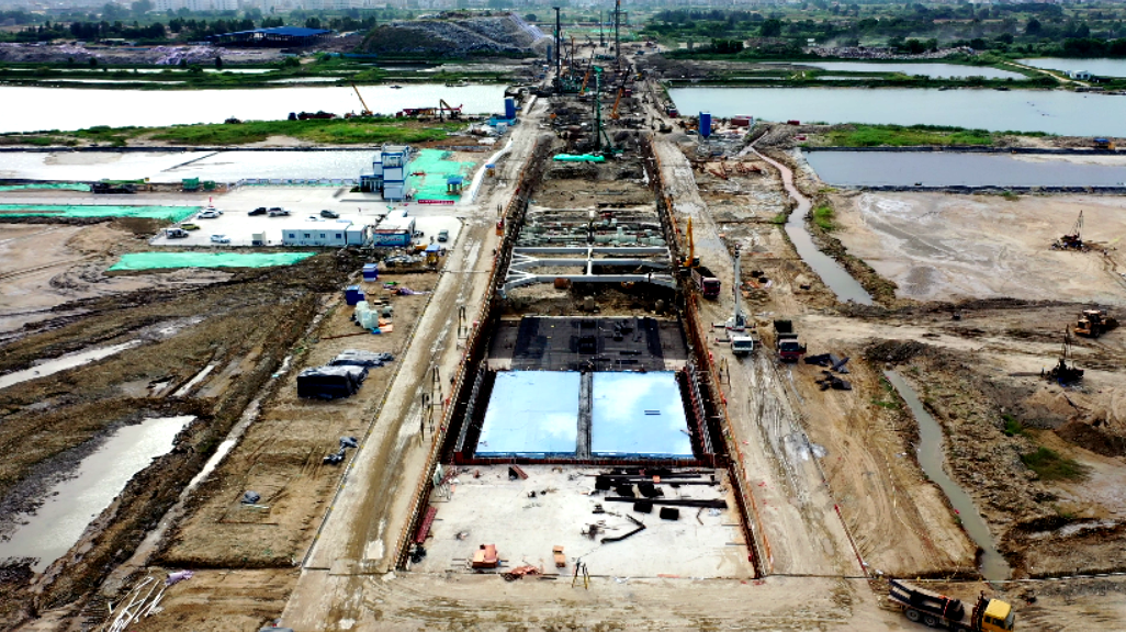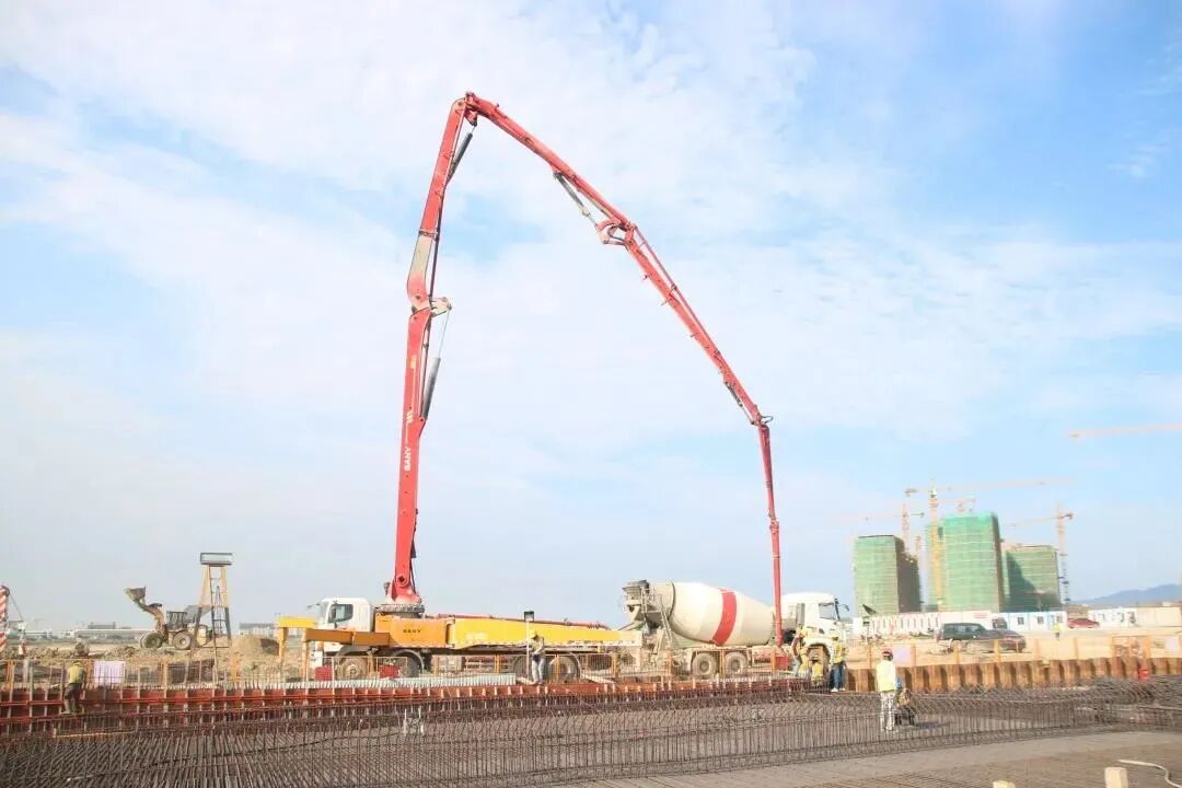 翠峰路下穿隧道位于东海岸新城塔岗围片区,跨内河涌连接翠峰路与中阳大道。隧道全长750米,车行道限界净高5米,设计为双向6车道,主体结构采用 C50 海工高性能砼(抗渗等级P8)。钢筋通过智能化钢筋工厂集中加工、统一配送,保障质量标准,于今年4月份启动建设,计划2021年2月完成主体结构施工。 该隧道共划分成24个结构段,此次浇筑为敞口段,长25米,宽27.62米,浇筑混凝土方量共434m³。浇筑过程采用底板、侧墙一次浇筑的施工工艺,按照底板、侧墙等施工部位依次、对称浇筑。由于隧道所处位置围护结构工程量大、场地狭小,为保证隧道首段主体结构施工顺利进行,浇筑前施工人员针对施工过程中可能出现的问题进行了认真分析预判,提前制定了隧道首个结构段浇筑施工专项方案。过程中严格控制混凝土拌合运输、塌落度、分层浇筑、振捣等关键工序,运用高分子复合材料模板强化混凝土浇筑成型质量,并做好支架模板变形监测和施工管理工作,确保首段混凝土浇筑顺利完成。