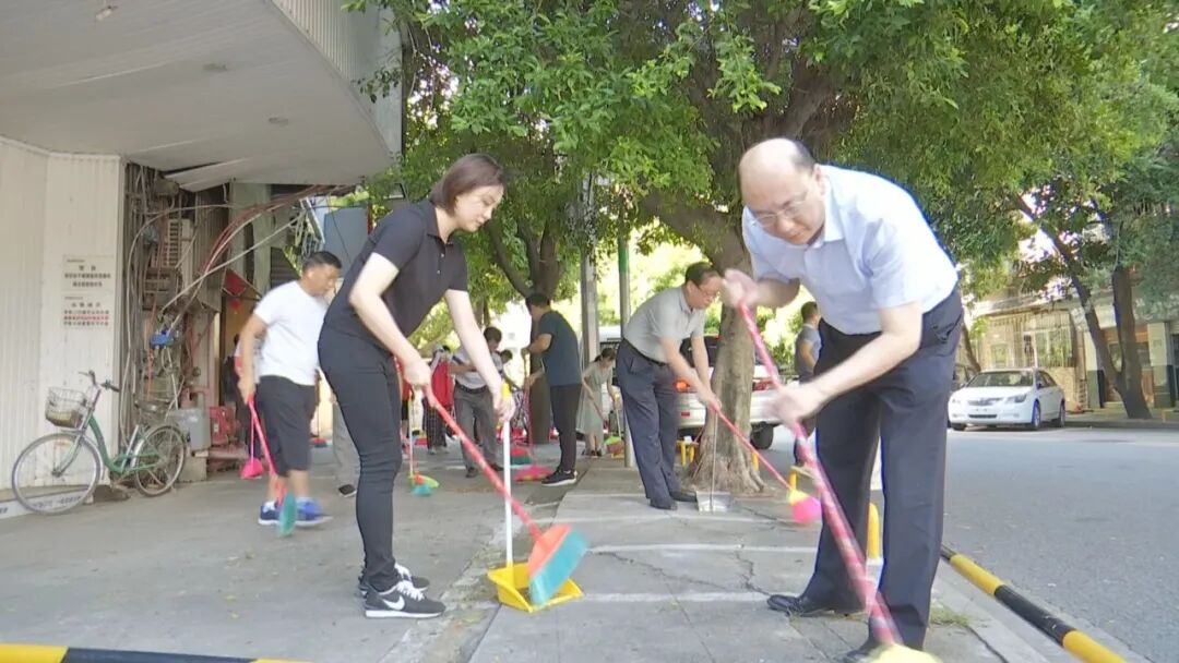 在金平区石炮台街道三让路一横巷,市政府办公室干部职工与石炮台街道、新湖社区居委干部群众一起,清扫沿街路面、人行步道上的垃圾,同时深入背街小巷,开展环境卫生整治,并对占道经营等行为进行规劝,引导商户文明经营。 市政府总值班室主任林晓栋表示:“环境卫生整洁是创建全国文明城市的一件绣花功夫,既需要我们城市精细化管理,也需要我们全市人民上下一心共同参与。从身边做起,从小事做起,从手边的每一件文明事情做起,为创建全国文明城市共同助力。” 市政府办公室副科长陈蓁蓁说:“今天利用周末的时间参加义务劳动,通过自己的身体力行带动身边人做好身边事,为建设美丽汕头贡献一份力量。”