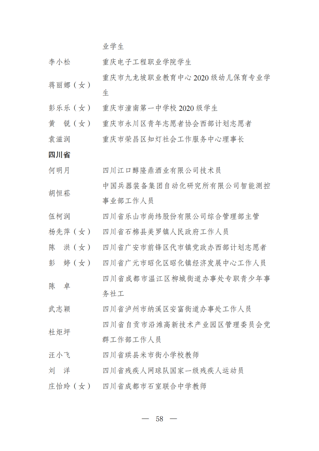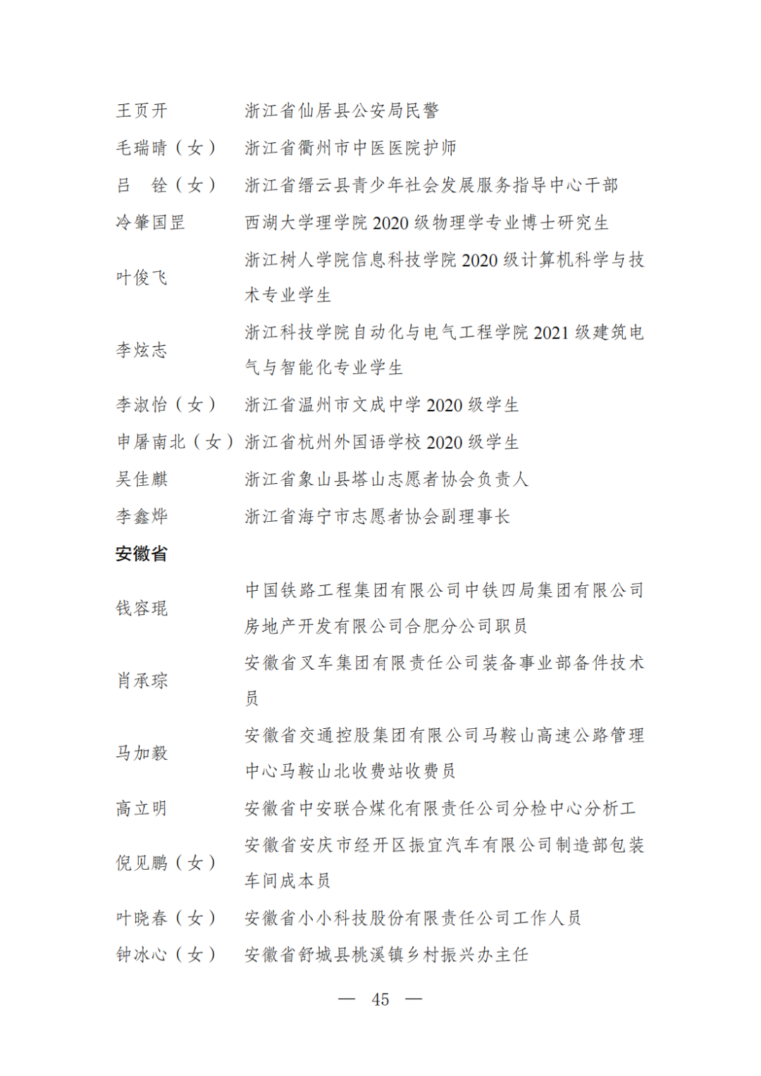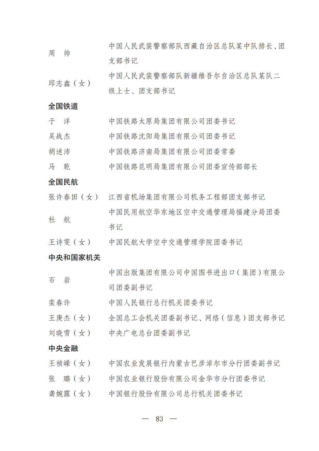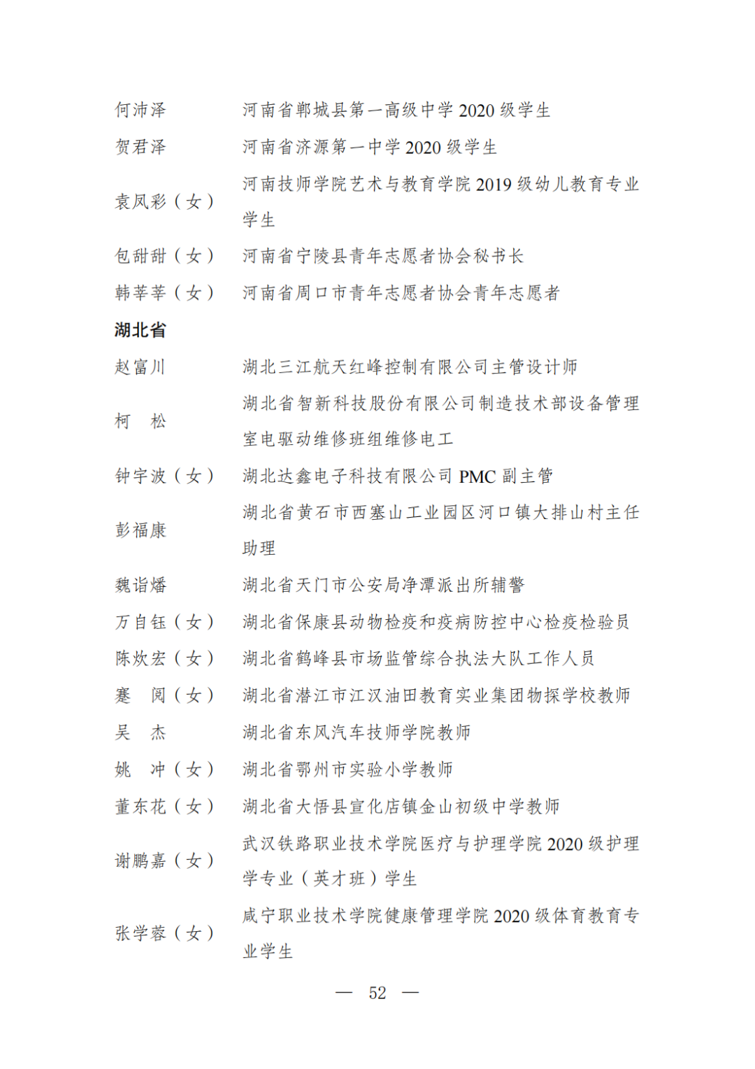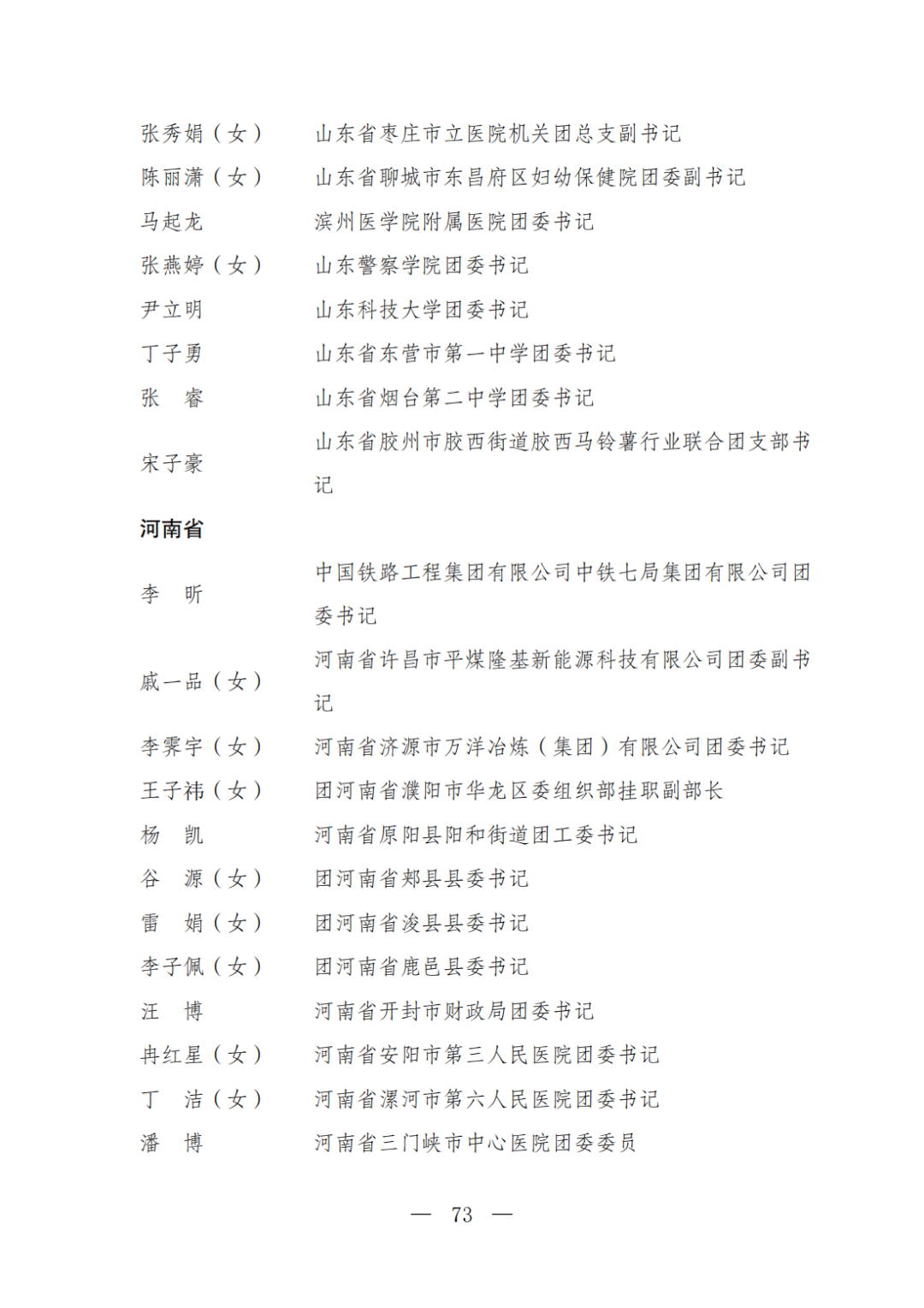 | 透过视窗,了解龙湖 全国五四红旗团委(团支部)、全国优秀共青团员、全国优秀共青团干部是共青团中央设立的分别授予县级以下团委和基层团组织、团员、团干部的团内最高荣誉。为充分发挥先进典型示范引领作用,激励广大团组织和团员、团干部踔厉奋发、创先争优,共青团中央决定,在五四青年节前表彰一批先进团组织和团员、团干部。 经基层团组织推荐、省级团委考察初审、共青团中央复审,提出685个团组织、482名(含追授1名)团员、342名共青团干部的拟表彰名单。现予以公示,公示时间为2023年4月7日至4月13日。公示期间,如对拟表彰对象持有异议,可通过电话、传真、电子邮件、信函等形式反映情况,信函以到达日邮戳为准。反映情况要客观真实,以个人名义反映情况的材料应提供实名及联系方式,以单位名义反映情况的材料需加盖单位公章。 电话:(010)85212088 传真:(010)85212187 电子邮箱:tzytyglc@gqt.org.cn 通信地址:北京市东城区前门东大街10号共青团中央基层建设部 邮政编码:100005 龙湖区有1名个人入围公示:广东省汕头市龙湖区龙腾街道应急办工作人员谢松斌入选全国优秀共青团员名单。 全国优秀共青团员 广东省汕头市龙湖区 龙腾街道应急办工作人员谢松斌 以下是全部名单公示: 全国五四红旗团委名单(共296个) (左右滑动图片可见全部名单) 全国五四红旗团支部名单 (共389个) (左右滑动图片可见全部名单) 全国优秀共青团员名单 (共482人) (左右滑动图片可见全部名单) 全国优秀共青团干部名单 (共342人) (左右滑动图片可见全部名单) 信息来源 | 龙湖青年 投稿请发 | 龙湖区融媒体中心 邮箱 | stlhxxg@126.com 龙湖视窗 汕头市龙湖区政府官方发布平台 ● 微信号 : st-longhu ● ●透过龙湖视窗 看升腾中的龙湖 ● |