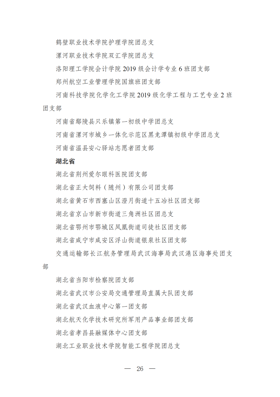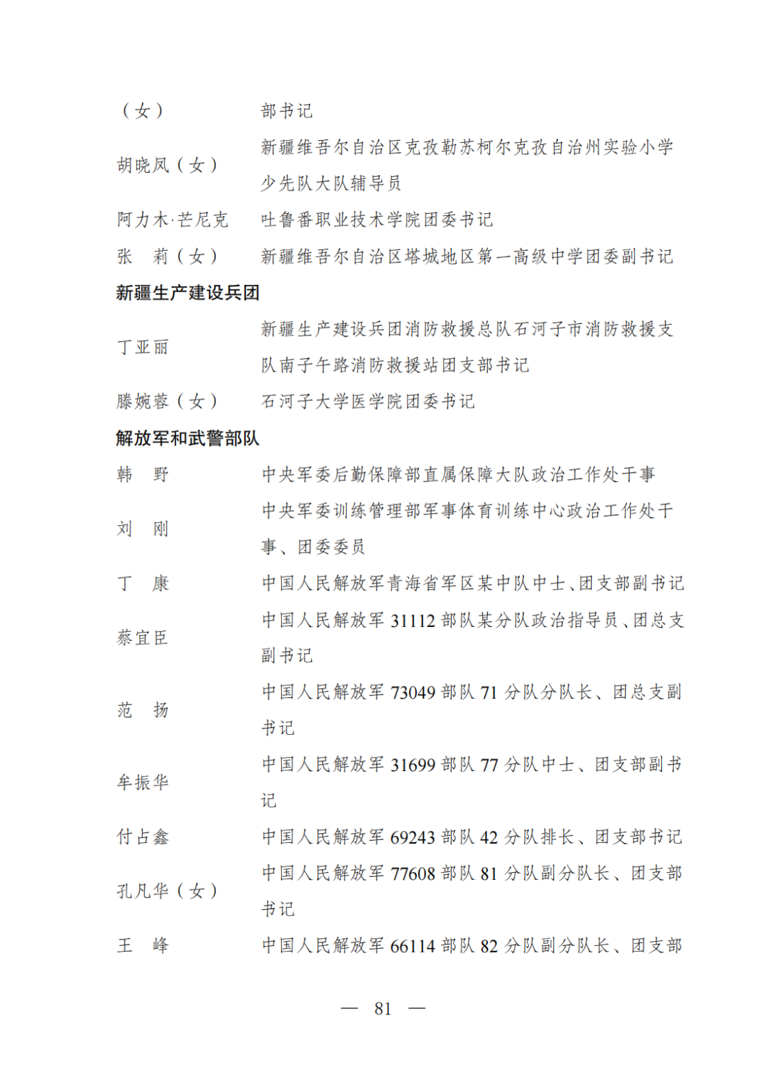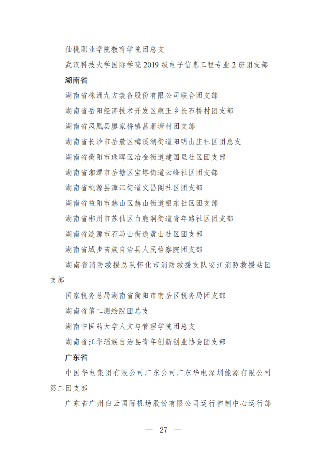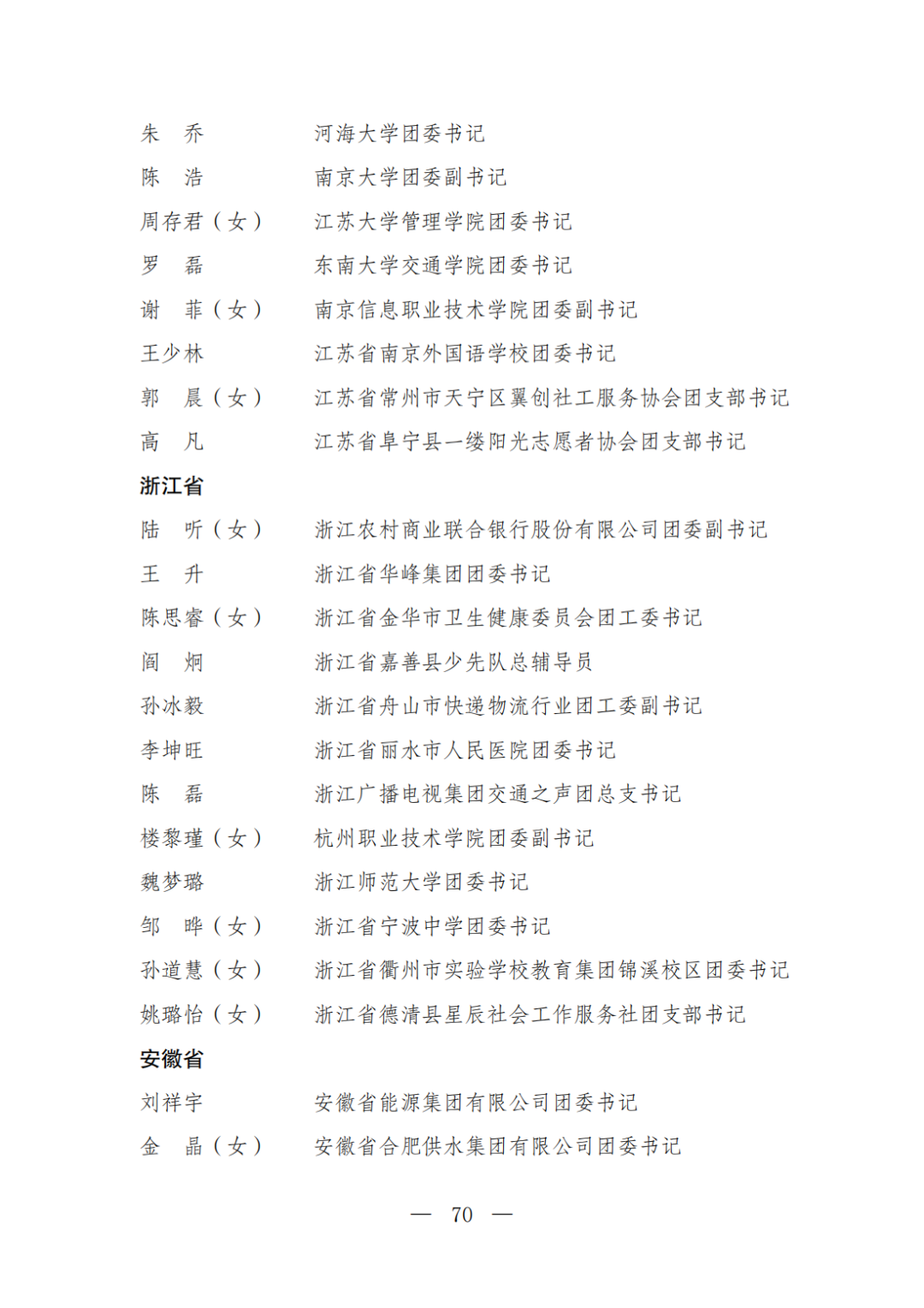 | 透过视窗,了解龙湖 全国五四红旗团委(团支部)、全国优秀共青团员、全国优秀共青团干部是共青团中央设立的分别授予县级以下团委和基层团组织、团员、团干部的团内最高荣誉。为充分发挥先进典型示范引领作用,激励广大团组织和团员、团干部踔厉奋发、创先争优,共青团中央决定,在五四青年节前表彰一批先进团组织和团员、团干部。 经基层团组织推荐、省级团委考察初审、共青团中央复审,提出685个团组织、482名(含追授1名)团员、342名共青团干部的拟表彰名单。现予以公示,公示时间为2023年4月7日至4月13日。公示期间,如对拟表彰对象持有异议,可通过电话、传真、电子邮件、信函等形式反映情况,信函以到达日邮戳为准。反映情况要客观真实,以个人名义反映情况的材料应提供实名及联系方式,以单位名义反映情况的材料需加盖单位公章。 电话:(010)85212088 传真:(010)85212187 电子邮箱:tzytyglc@gqt.org.cn 通信地址:北京市东城区前门东大街10号共青团中央基层建设部 邮政编码:100005 龙湖区有1名个人入围公示:广东省汕头市龙湖区龙腾街道应急办工作人员谢松斌入选全国优秀共青团员名单。 全国优秀共青团员 广东省汕头市龙湖区 龙腾街道应急办工作人员谢松斌 以下是全部名单公示: 全国五四红旗团委名单(共296个) (左右滑动图片可见全部名单) 全国五四红旗团支部名单 (共389个) (左右滑动图片可见全部名单) 全国优秀共青团员名单 (共482人) (左右滑动图片可见全部名单) 全国优秀共青团干部名单 (共342人) (左右滑动图片可见全部名单) 信息来源 | 龙湖青年 投稿请发 | 龙湖区融媒体中心 邮箱 | stlhxxg@126.com 龙湖视窗 汕头市龙湖区政府官方发布平台 ● 微信号 : st-longhu ● ●透过龙湖视窗 看升腾中的龙湖 ● |