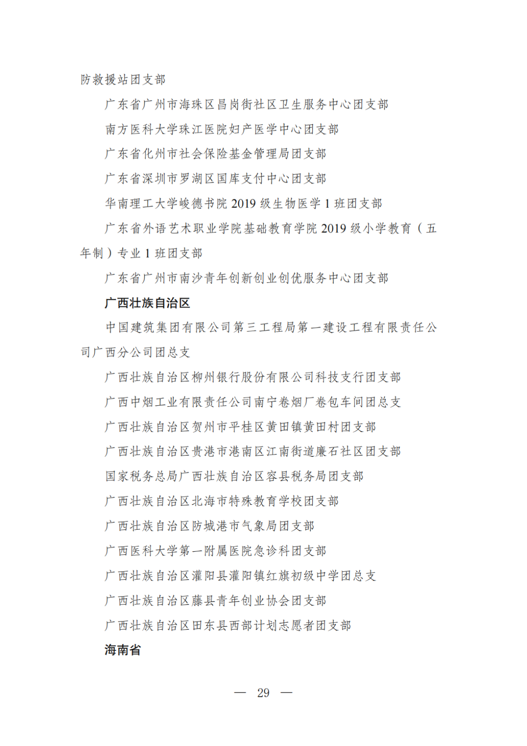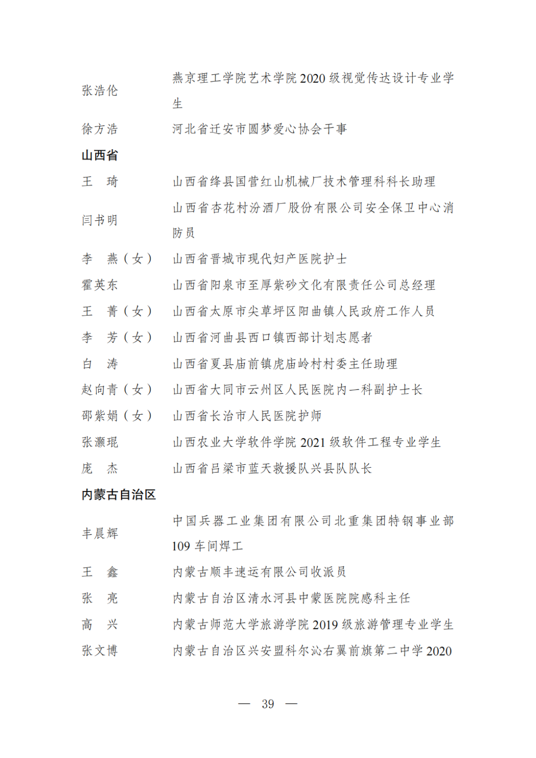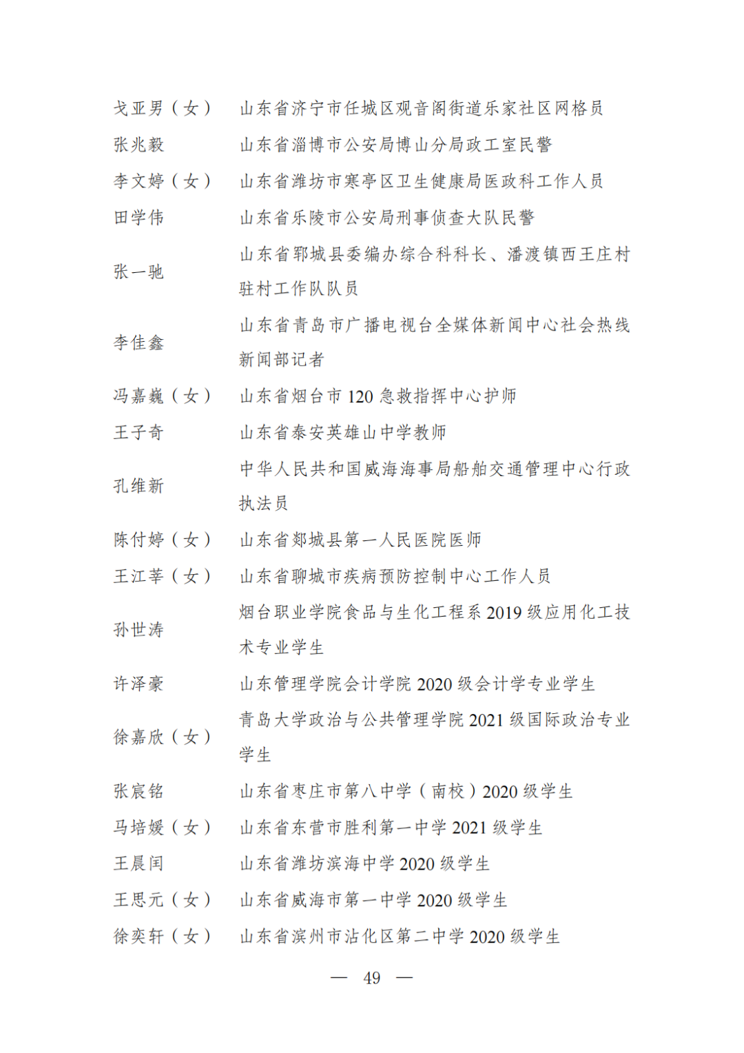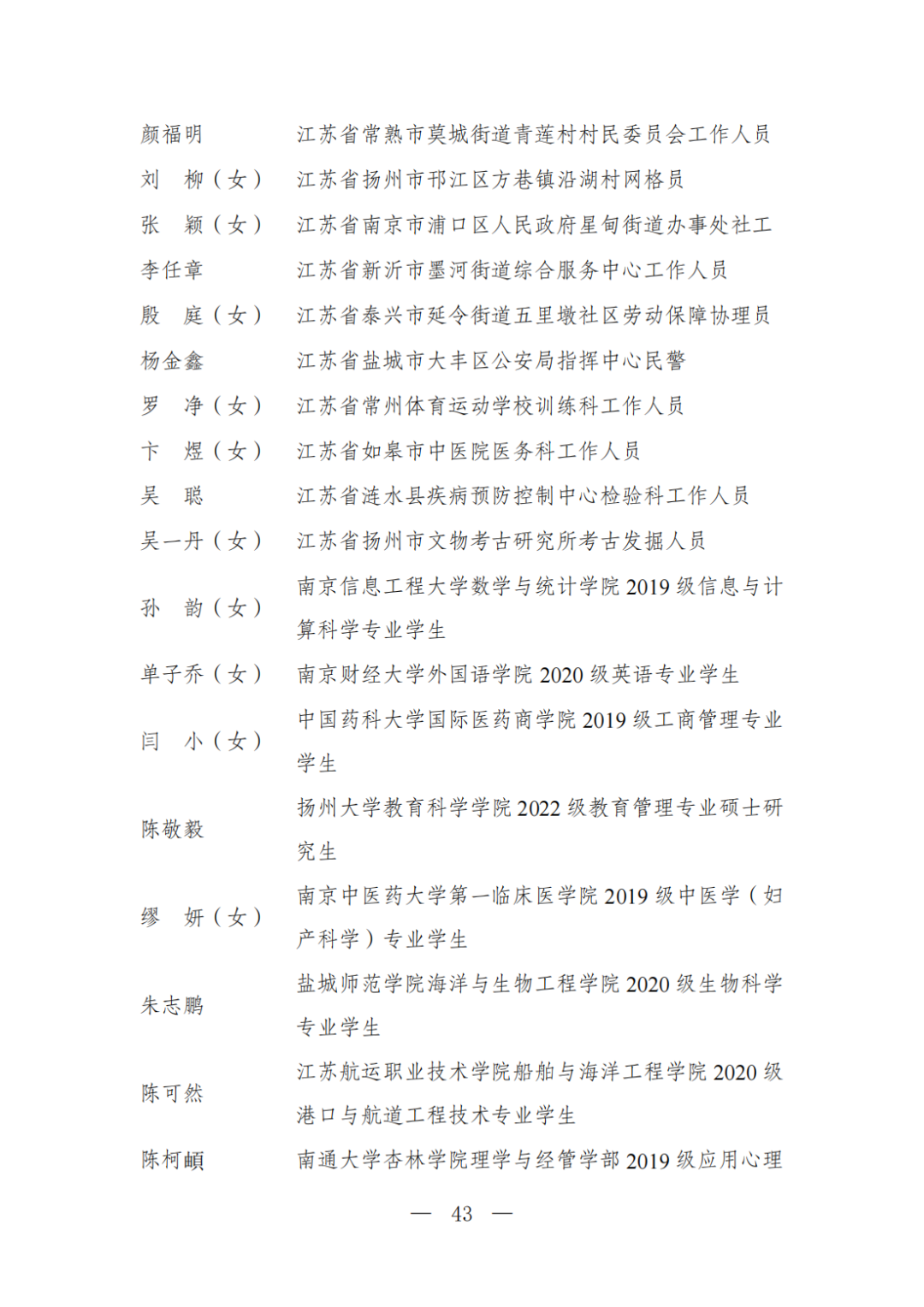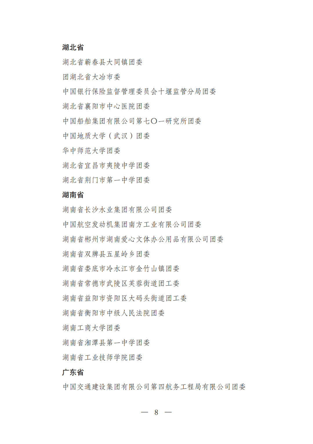 | 透过视窗,了解龙湖 全国五四红旗团委(团支部)、全国优秀共青团员、全国优秀共青团干部是共青团中央设立的分别授予县级以下团委和基层团组织、团员、团干部的团内最高荣誉。为充分发挥先进典型示范引领作用,激励广大团组织和团员、团干部踔厉奋发、创先争优,共青团中央决定,在五四青年节前表彰一批先进团组织和团员、团干部。 经基层团组织推荐、省级团委考察初审、共青团中央复审,提出685个团组织、482名(含追授1名)团员、342名共青团干部的拟表彰名单。现予以公示,公示时间为2023年4月7日至4月13日。公示期间,如对拟表彰对象持有异议,可通过电话、传真、电子邮件、信函等形式反映情况,信函以到达日邮戳为准。反映情况要客观真实,以个人名义反映情况的材料应提供实名及联系方式,以单位名义反映情况的材料需加盖单位公章。 电话:(010)85212088 传真:(010)85212187 电子邮箱:tzytyglc@gqt.org.cn 通信地址:北京市东城区前门东大街10号共青团中央基层建设部 邮政编码:100005 龙湖区有1名个人入围公示:广东省汕头市龙湖区龙腾街道应急办工作人员谢松斌入选全国优秀共青团员名单。 全国优秀共青团员 广东省汕头市龙湖区 龙腾街道应急办工作人员谢松斌 以下是全部名单公示: 全国五四红旗团委名单(共296个) (左右滑动图片可见全部名单) 全国五四红旗团支部名单 (共389个) (左右滑动图片可见全部名单) 全国优秀共青团员名单 (共482人) (左右滑动图片可见全部名单) 全国优秀共青团干部名单 (共342人) (左右滑动图片可见全部名单) 信息来源 | 龙湖青年 投稿请发 | 龙湖区融媒体中心 邮箱 | stlhxxg@126.com 龙湖视窗 汕头市龙湖区政府官方发布平台 ● 微信号 : st-longhu ● ●透过龙湖视窗 看升腾中的龙湖 ● |
