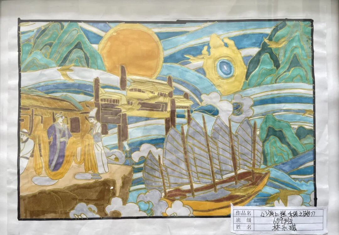 | 夏日悠长 晚风香远 在这里 一场色彩缤纷、创意爆棚的视觉盛宴 一起来看这场活力无限的展览吧! 感受夏天一般热情如火的色彩魅力~ “南澳·童样精彩”主题展 前言 海上重镇,别样景致。南澳县作为广东省唯一的海岛县,兼有独特的海岛区位、瑰丽的海岛风光、殷实的海岛文明、璀璨的海岛文化、鲜活的海岛故事。南澳之美,美在自然,美在人文,美在开放包容,美在生生不息。 莘莘学子,南澳之光。在勇于拼搏、敢闯敢为、海纳百川、自强不息的海岛精神滋养下,一代代南澳学子茁壮成长,意气风发,胸怀家国,矢志奋斗。文化共建,文明共享。南澳县文化馆携手南澳县后宅镇中心小学举办“南澳·童样精彩”主题展,旨在为青葱少年登台献艺、志道游艺搭建平台,为公共文化立德树人、奖掖后学创设窗口。 丝路明珠,“童”样精彩。讲好海岛故事,美化海岛形象,弘扬海岛精神,南澳少年在行动。以绘运思,以画创文,以艺抒怀,海岛学子我看行。南澳县后宅镇中心小学(西校区)六年级学生以海上丝绸之路为文化背景,紧扣海洋、潮汕、南澳三大文化元素,创意绘制,频出佳作,彰显文化担当,砥砺文化自强。南澳学子,丝路明珠;向美而行,未来可期! 展览作品 编辑 | 陈新阳 校核 | 吴跃明 审核 | 蔡学鹏 |