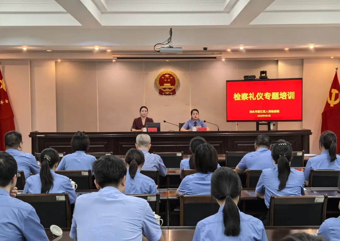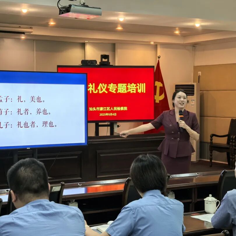 检察礼仪专题讲座 为切实提升检察干警礼仪水平和职业素养,持续深化礼仪规范与检察业务的有机融合,9月4日下午,我院举行检察礼仪专题讲座,邀请国家高级礼仪培训师、高级公务礼仪教师、汕头市职业技术学院方璜老师作专题授课。院党组成员、副检察长李乐琴主持讲座并讲话,全体检察干警参加讲座。 ![]() ![]() 讲座上,方璜老师结合检察工作实际,聚焦司法服务场景需求,从形象礼仪、工作礼仪、沟通礼仪三个方面精准剖析了检察礼仪的核心要义与实践路径,授课既有宏观理论的阐述,又有微观细节的指导,融指导性、实用性、启发性于一体,切实引导干警将礼仪规范内化为职业习惯,外化为检察形象,以更好的精神面貌推动检察各项工作走深走实。 ![]() 会议强调 01 一是要以“思”为基,把礼仪内涵悟深悟透。要深刻认识到检察礼仪是司法文明的直观体现,是司法为民、公正司法的内在需要,更是连接检察机关与人民群众的重要桥梁。要深化对检察礼仪内涵的理解,把检察礼仪的要求内化为自身的思想自觉和行动自觉,强化规范履职意识,将礼仪规范融入日常工作,以礼仪正言行、以言行树公信,自觉做检察形象的维护者、司法文明的践行者。 02 二是要以“行”为要,让礼仪要求落地见效。要注重学用结合,在开展出庭公诉、信访接待、法治宣传等各项检察工作中保持言行得体,把每一个礼仪细节落实到检察履职的全过程、各环节,以实际行动彰显检察文明。要深耕文化育检,不断增强“内强素质、外塑形象”的自觉性和主动性,开展多形式礼仪培训、文体活动,全面提升检察人员政治素质和专业素养,进一步提升司法为民服务“软实力”。 03 三是要以“督”为盾,促礼仪规范常态长效。要推进作风建设常态化长效化,将学习检察礼仪与巩固深入贯彻中央八项规定精神学习教育成果结合起来,以礼仪促规范,以规范优作风,以作风提效能。要以此次专题讲座为契机,自觉学习、自觉践行礼仪规范,将检察礼仪融入日常、用在经常,以更高标准服务群众、推动工作,展现新时代濠检人的优良素质与精神风貌。 往期原创精选