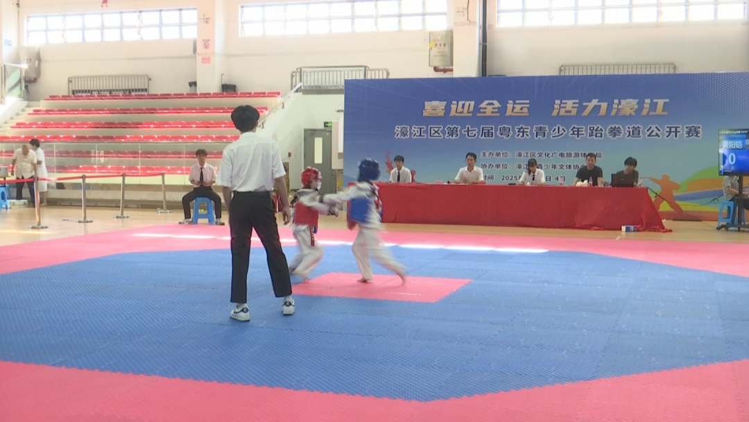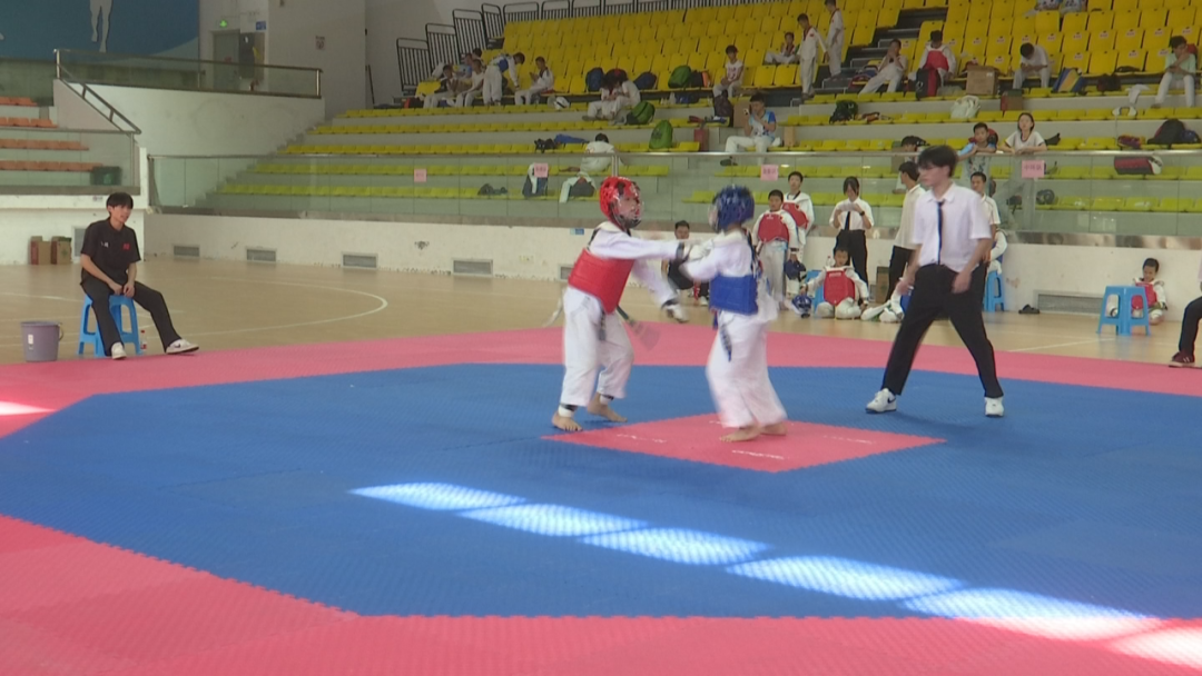 在濠江区体育馆,阵阵吆喝声和喝彩声不时响起,蓝色赛垫上,小选手快速移动,择机出击,争取拿下分数。 ![]()