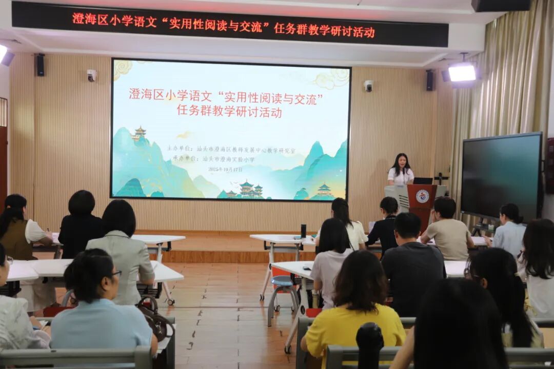 十月,是收获的季节,也是沉淀与深耕的时节。10月17日,澄海小语人欢聚在汕头市澄海实验小学,举行小学语文“实用性阅读与交流”任务群教学研讨活动。区小学语文教研中心组成员、区小学语文教师工作室成员、各镇(街道)、直属小学语文教研组长和各校语文教师代表参加了本次研讨活动。![]() 活动第一环节由澄海实验小学蔡淳老师执教四年级上册第三单元“实用性阅读与交流”学习任务群“学做小小观察员”之第十课时——《学做小小观察员:写观察日记》。课始,她以单元活动主题“学做小小观察员”主题切入,引导删繁就简,选取变化最显著的节点,用固定句式在小组中交流,完成由“记”到“选”的过渡。随后,聚焦“平菇长高”那天,借助下水文示范多角度描述与感受表达;学生即兴练说,同伴即时点评,突破“把变化说具体”这一重难点。最后,教师出示日记范文,学生当堂撰写单日观察日记,再依星级表自评互评,为下一课时连篇成文奠基。整堂课以真实观察为源,以表达交流为本,生活与语文双向奔赴,童言在交流与表达中熠熠生辉。 ![]() 评课议课环节中,参与听课的青年老师和区中心组成员都作了发言。郑卓璇老师肯定本节课精准把握了第二学段“乐于书面表达”的习作核心目标,以学生的真实观察和原始记录作素材,用“我手写我见”激活写作内驱;凸显四年级观察日记的发展性要求,从筛选关键日、赏析精准表达到范文引领,层级递进;构建了“保底”与“提升”并重的路径,让不同层次的学生都能在自己的起点上获得看得见的提升;整节课的教学,落实了语文要素,完美诠释了“实用性阅读与交流”任务群的核心理念。杜彩霞老师认为本节课锚定语文本质,目标精准有方向,过程扎实有梯度,指导得法有巧思。紧扣语文核心素养,既落实了“准确表达、具体生动”的习作核心任务,又渗透了“感受世界奇妙”的情感体验,将习作教学融入生活体验与语言实践中,尽显语文课堂的温润与厚重,是一节扎实有趣、可循可鉴的习作指导课。 ![]() ![]() 随后,区小学语文教研中心组王少媛老师作了题为《立足生活 实践赋能——小学语文“实用性阅读与交流”学习任务群的实践探索》的专题分享。王老师首先介绍了实验小学在落实“实用性阅读与交流”学习任务群方面的系列举措。学校通过教研赋能教学实践,构建起“理论学习—实践探索—总结提升”的闭环机制,持续推动课堂教学改革。作为该任务群的实践先行者,王老师系统阐述了其研究成果——构建“阅读+交流”双轮驱动的任务型课堂实施策略。精准定位“阅读”与“交流”双向目标,创设真实任务情境,实现阅读与交流的层层递进,提供结构化文本支持,嵌入过程性方法指导,建立涵盖师评、自评、互评的多元评价机制,实现双向赋能。王老师领衔的实践探索让语文学习回归生活本色,通过任务群搭建起语文与生活的桥梁,为提升学生语文综合实践素养筑牢根基,为推进课堂教学改革提供了具有借鉴价值的实践范式。 ![]() 最后,区小学语文教研员陈慎瑜老师作了总结性发言,高度评价王老师讲座中提出的“实用性阅读与交流”任务群六大实施策略,也充分肯定蔡老师的课是一节遵循课标理念、用好统编教材、实施单元整体设计、体现任务群学习特点的好课。强调语文老师要研究课标,研究教材,坚守本心,追寻本色课堂,实现“以语育人、以文化人”的教学新样态,打造“教—学—评”良性互动、相互成就的语文新课堂。并要求各校听课代表返校二次教研,传达学习所得,交流活动心得,传递前沿信息,提升教研效益。 ![]() 任务驱动启新思,实用为核探真知。此次研讨,引领澄海小语人深耕任务群,关注生活,学以致用,共绘“实用性阅读与交流”新画卷,再启新征程! ![]() END 撰稿:陈慎瑜 夏锦萍 编辑:林 波 初审:陈绍忠 复审:许哲斌 终审:林 俊 ![]() |
