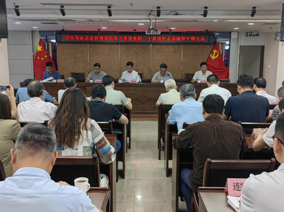 |  点击上方“蓝字”,关注更多精彩  10月31日下午,市农业农村局召开干部大会,深入学习贯彻习近平总书记在党的二十届四中全会上的重要讲话和全会精神,传达全省、全市干部大会精神,动员部署市农业农村局贯彻落实工作。市农业农村局主要负责同志主持会议并讲话,局机关全体干部职工和各所属单位负责人参加会议。  会议指出,党的二十届四中全会是在以中国式现代化全面推进强国建设、民族复兴伟业的关键时期召开的一次十分重要的大会。市农业农村局全体干部职工要深刻领会党的二十届四中全会的重大意义、丰富内涵和精神实质,深入学习领会、全面准确把握全会精神,凝心聚力,扎实工作,奋力开创汕头农业农村现代化新局面,为推进中国式现代化的汕头实践提供有力支撑。 会议强调,要深入践行大农业观大食物观,统筹发展科技农业、绿色农业、质量农业、品牌农业,提高强农惠农富农政策效能,巩固提升粮食和重要农产品综合生产能力。要做好汕头“土特产”文章,大力发展丝苗米、狮头鹅、优质蔬菜、水产、甘薯、花卉等特色农产品产业,持续打造百亿级现代农业产业集群。要全力推进现代化海洋牧场建设,加快推进国家级、省级沿海渔港经济区建设,培育一批转型升级的现代化海洋牧场联合体,带动中小企业、合作社等实现转型升级。要持续开展防止返贫动态监测与帮扶,推进驻镇帮镇扶村工作,巩固拓展脱贫攻坚成果。要深入开展村庄清洁、专项整治、乡村绿化等“三大行动”,整治提升农村人居环境,扎实推进宜居宜业和美乡村建设。要深化农村综合改革,落实第二轮土地承包到期后再延长30年试点,完善“三权分置”配套政策。多渠道盘活农村闲置资产,发展壮大农村集体经济。要推动汕头市数字农业农村大数据平台落地,促进数字技术与现代农业全面融合。  会议要求,要把学习宣传贯彻党的二十届四中全会精神,作为当前和今后一个时期的重大政治任务,精心组织开展好传达学习、宣传贯彻各项工作。要高质量推进汕头市农业农村现代化“十五五”规划编制,扎实推进年度各项重点任务落实,确保上级各项决策部署落地落细取得实效。要纵深推进全面从严治党,持续巩固拓展党纪学习教育和深入贯彻中央八项规定精神学习教育成果,努力营造风清气正、干事创业的政治生态。 END 来源:机关党委 编审:陈灿亮  扫一扫了解更多 |