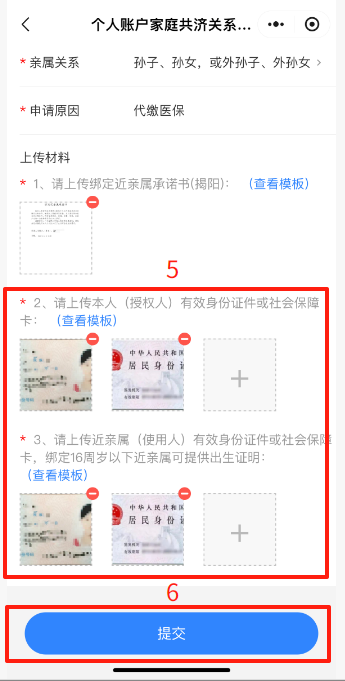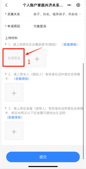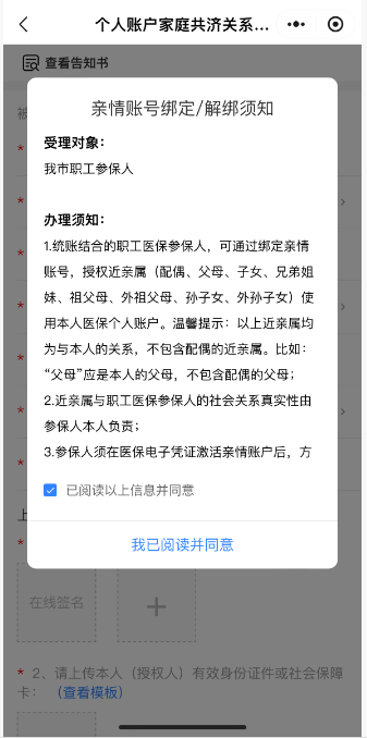 ![]() 为减轻家庭成员参加居民医保费用负担,我市职工医保个人账户已支持缴纳本人近亲属居民医保的费用。按照《民法典》规定,近亲属包括配偶、父母、子女、兄弟姐妹、祖父母、外祖父母、孙子女、外孙子女。 今天,小编手把手教您怎么用职工医保个人账户为近亲属缴费。 第一步 办理个人账户家庭共济关系绑定/解绑 (1)微信搜索“粤医保”小程序或点击下方葵花码图片进入,并登录。 ![]() ![]() (2)在“我要办事”栏点击“查看更多>”,在“业务办理”模块选择“个人账户家庭共济关系绑定/解绑”业务。 ![]() ![]() (3)进入“个人账户家庭共济关系绑定/解绑”业务界面,点击“+”,阅读须知并同意后,填写需要绑定的近亲属信息。 ![]() ![]() ![]() (左右滑动查看图片) (4)上传绑定共济关系所需资料。《绑定近亲属承诺书》可在线签署(与纸质件签名具有同等法律效力),无须再上传纸质件。 ①点击“在线签名”,进入“电子签名”模式,阅读承诺书内容; ②点击“在线签名”按钮; ③接着点击“允许”进入“粤信签”小程序,按系统步骤完成承诺书在线签名; ④确认无误后点击“确定”,跳回共济关系绑定界面; ⑤上传身份证件资料; ⑥点击“提交”即可完成绑定。 ![]() ![]() ![]() ![]() ![]() (左右滑动查看图片) (5)提交成功后,请耐心等待审核,可以在以下界面查询审核进度、查询本人已关联的近亲属。审核通过后,需到“粤税通”进行缴费。如需解绑,也可以点击“关系解绑”解除。 ![]() ![]() 第二步 使用医保个人账户支付居民医保费用 1 微信搜索“粤医保”小程序或点击下方葵花码图片进入,并登录。 ![]() 2 选择“城乡居民社保”→“城乡居民社保费清缴”。 ![]() ![]() 3 填写信息。“险种”选择“城乡居民医疗保险”,“缴费类型”选择“代他人缴费”。 在“户籍信息”页面,填写近亲属的“姓名”、“证件号码”,“险种”选择“城乡居民医疗保险”,点击“确定”进入应征信息界面。 ![]() ![]() 4 选择需要清缴的应征信息,点击“缴款”,选择“医保个账支付”,清缴成功后将跳转“清缴成功”界面,即为缴费成功。 ![]() ![]() 好政策不要错过,赶快收藏转发,让更多人知道吧!操作过程中有疑问也不用担心,联系参保地经办机构查询解决即可~ 全市医保经办机构联系方式: ![]() 编辑:揭阳市医疗保障局 ![]() ![]()  |